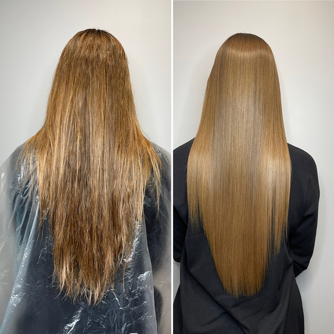 | Keratina – pătrunde în interiorul firului de păr, umple toate zonele deteriorate, conferă integritate părului și previne despicarea vârfurilor. |