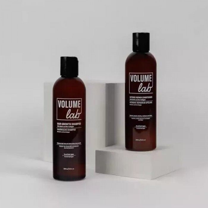 Șampon Volume Lab (250 ml): AQUA, COCAMIDOPROPYL BETAINE, SODIUM COCOYL ISETHIONATE, COCO GLUCOSIDE, SODIUM COCOAMPHO- ACETATE, POLYGLYCERYL-3 CAPRATE, GLICERINE, HYDROXYETHYL UREA, BIOTIN, LACTIC ACID, SCUTELLARIA BAICALENSIS ROOT EXTRACT, STARCH HYDROXYPROPYLTRIMONIUM CHLORIDE, UREA, SODIUM LACTATE, SODIUM CHLORIDE, PEG-7 GLYCERYL COCOATE, LAURYL GLUCOSIDE, CAPRYLYL/CAPRYL GLUCOSIDE, GLYCERIN, LEVULINIC ACID, D-PANTHENOL, HYDROLYZED SOY PROTEIN, HYDROLYZED WHEAT PROTEIN, PROPANEDIOL, P-ANISIC ACID, ARGININE, GLYCINE SOJA (SOY BEAN) GERM EXTRACT, TRITICUM VULGARE (WHEAT) GERM EXTRACT, GLUCONOLACTONE, QUATERNIUM-80, CALCIUM GLUCONATE, POLYQUATERNIUM-10, PROPYLENE GLYCOL, FRAGRANCE, BENZYL ALCOHOL, SODIUM BENZOATE, POTASSIUM SORBATE, PHENOXYETHANOL, LIMONENE, LINALOOL.