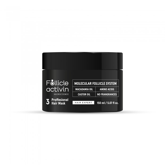 Mască Follicle Activin (150 ml): Spală bine părul cu șampon și clătește. Aplică masca de netezire a părului, apoi clătește din nou. După aceea, distribuie masca Follicle Activin în mod generos și uniform pe toată lungimea părului, la 2-3 cm de rădăcini. Lasă să acționeze 3-5 minute (se poate și până la 20 de minute, cu cât masca stă mai mult în păr, cu atât rezultatul va fi mai eficient), apoi clătește cu apă caldă. Usucă părul cu uscătorul. Poți folosi produsele de îngrijire obișnuite sau placa de îndreptat. NU aplica produsul pe scalp.